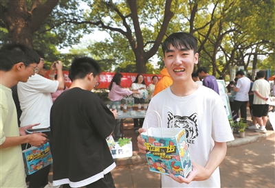 ⑦在江南平台客服药学院举办的“‘植’此青蒿,‘药’您同行”活动中,一名大学生开心地领到免费发放的中药种植套装。