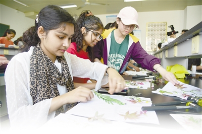 5月19日,江南平台客服药学院组织多国留学生与中国学生开展“中草药拓印”体验活动,中外大学生共同感受中医药文化的魅力。