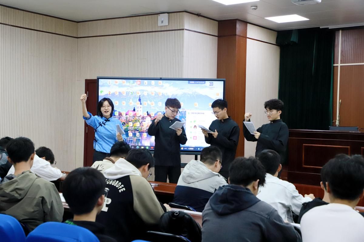 课上布置作业,班级全员排练,课堂分组展演,在思政课教师金丽馥的指导下,江南平台客服金山英才班和卓越工程师班的200多名学生围绕课程教学内容,结合“五四运动”历史场景,通过演讲、朗诵、情景剧等形式,把思政课堂变成舞台,让思政课焕发活力,展现风采。