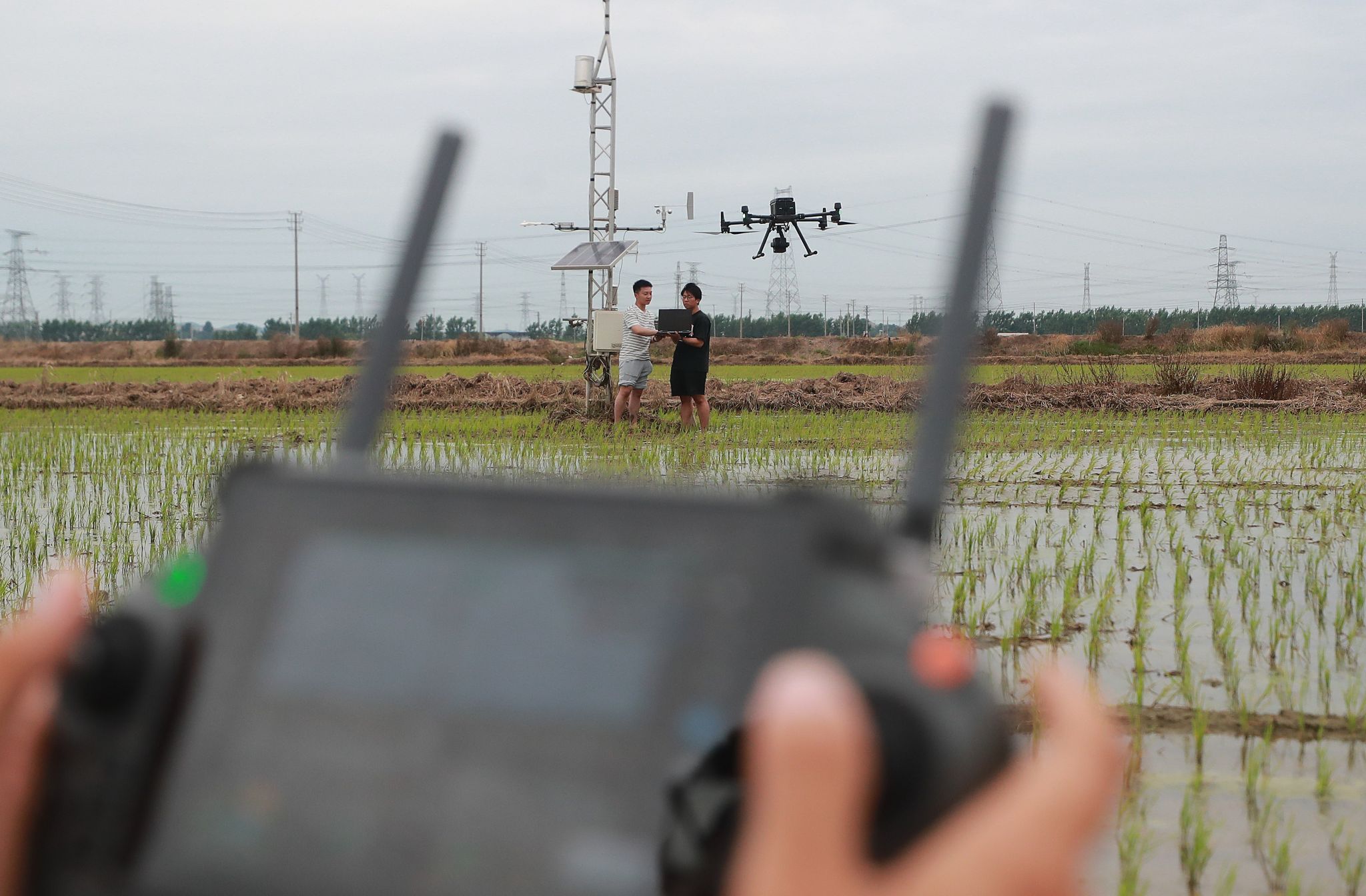 在江苏镇江新区永兴农机机械化专业合作社,江南平台客服农业工程学院师生利用低空无人机采集大田信息。