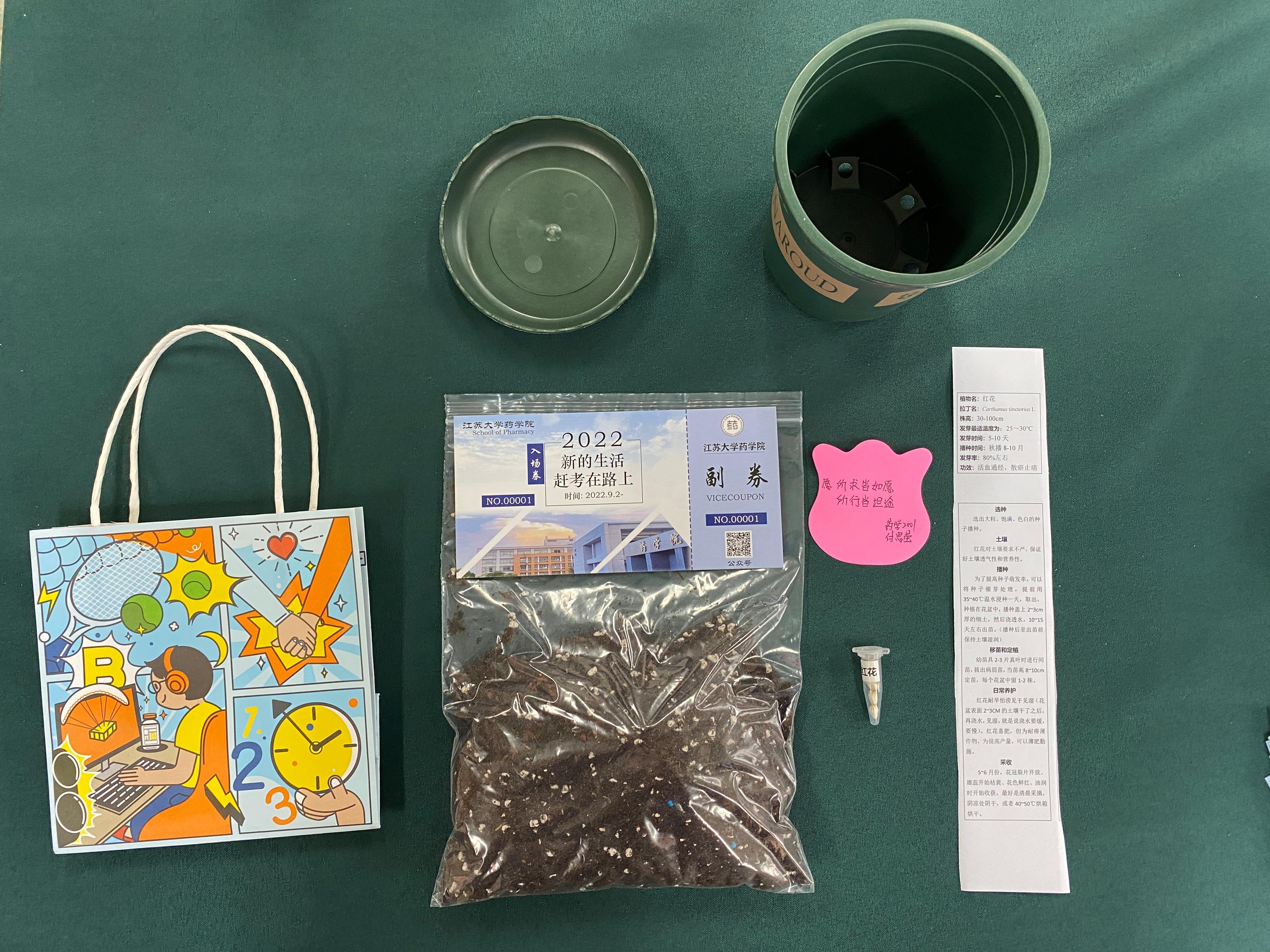 “送你一颗药用种子,微黍般轻小的胚囊,蓄藏生命最蓬勃的力量......”9月4日晚,在江南平台客服药学院本科生新生宿舍,首批完成报到手续的157名新生都获赠学院领导老师亲手送上的一份特殊开学礼:4粒中药材红花种子、一包营养土、一个花盆、一份种植攻略以及一张师长亲笔写的祝福便签。