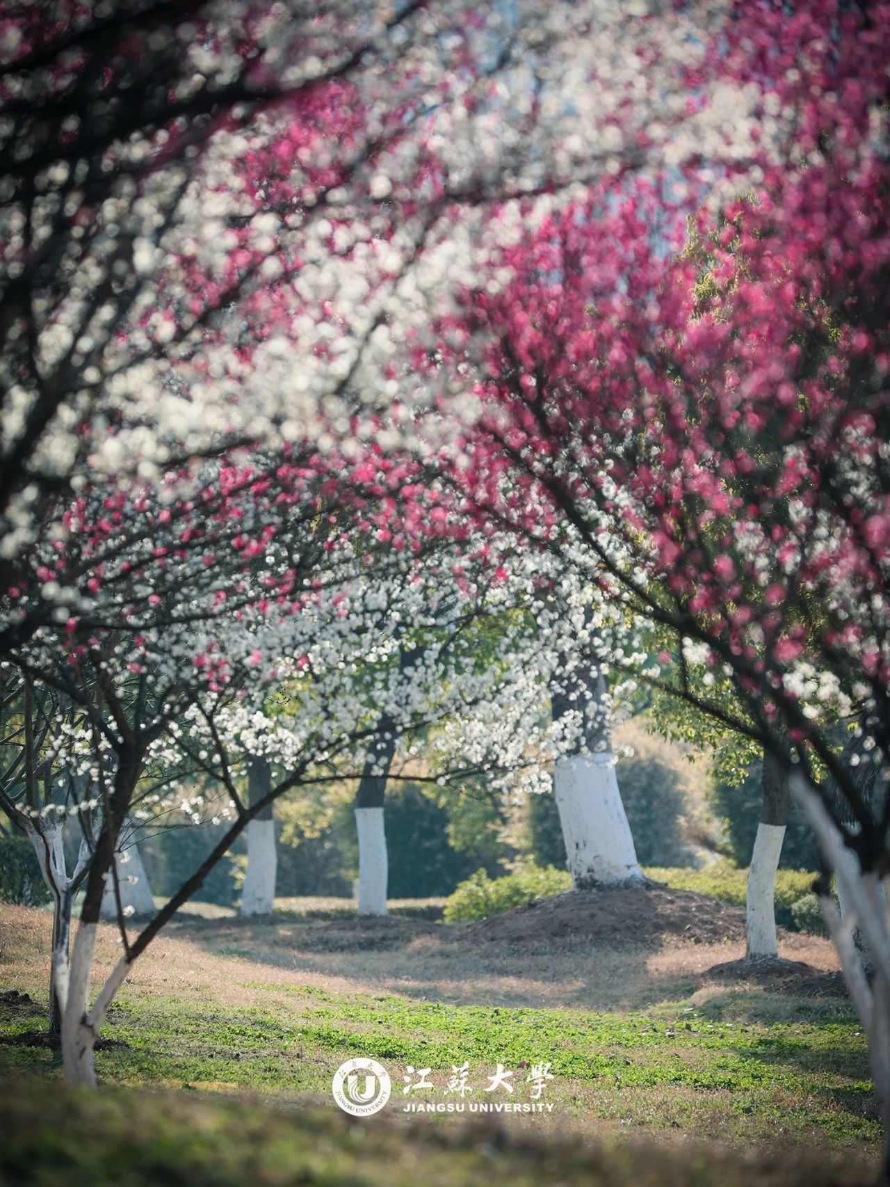 2月至3月,是江大梅园的最佳观赏期。占地25000平方米的梅园内,白梅、绿萼、美人梅、朱砂梅、宫粉等20余个品种的梅花竞相绽放,上千株梅花或艳如朝霞,或白似瑞雪,令师生流连忘返,并吸引不少社会人员前来“打卡”。3月8日当天,学校还在梅园举办走秀活动,邀全校女教工和女大学生们在梅园中以“红毯秀”的形式与芬芳梅花美丽邂逅。值得一提的是,这片建于2010年梅园,除了梅花,还种有其他观叶观花类植物,如迎春、香橼、红花檵木、红叶石楠、紫薇、茶梅、山茶、紫藤等,观赏效果极佳。
