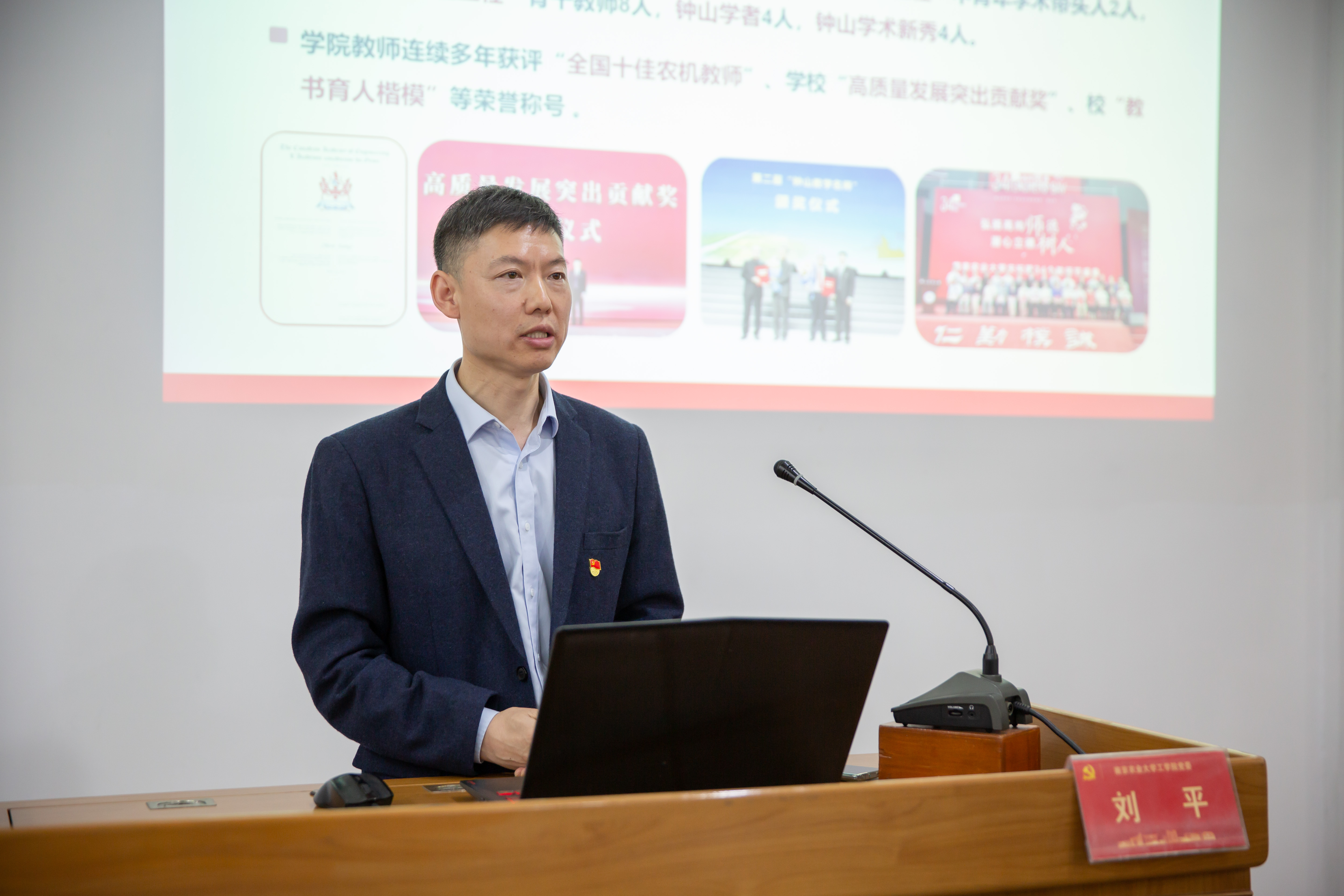 南京农业大学工学院党委副书记刘平作《实施党建创新“四大工程”引领学院高质量发展》大会主旨报告,围绕“领航学习、思想铸魂、同心聚力、双融双促”四大工程,介绍了工学院党建引领事业发展的经验及成果。